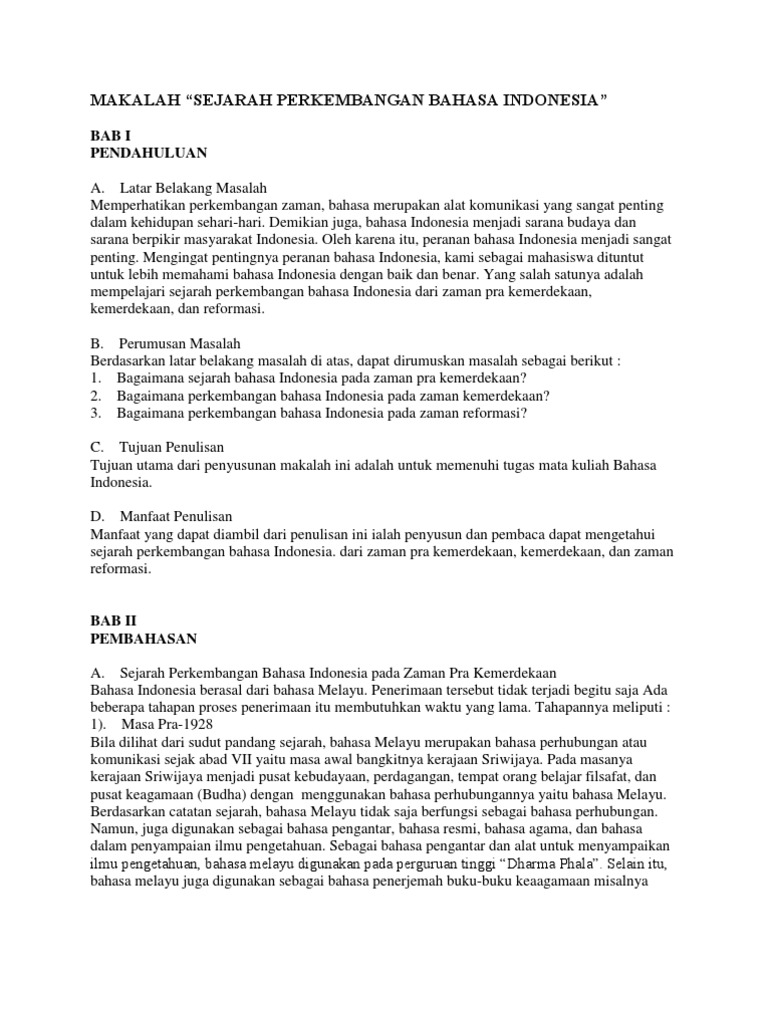 Makalah Sejarah Bahasa Indonesia Pdf Download