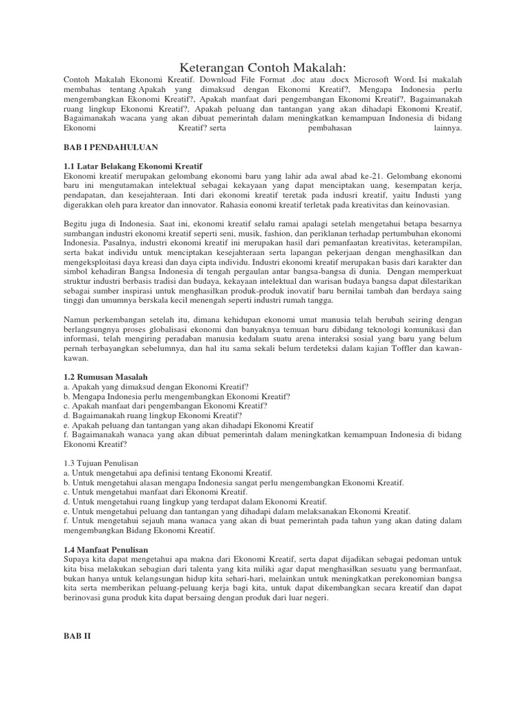 Makalah Ekonomi Kreatif Pdf Download