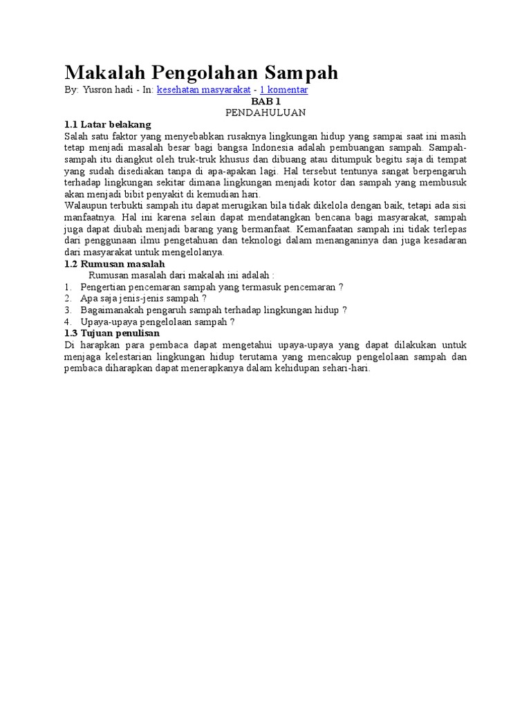 Makalah Pengelolaan Sampah Pdf, Telusuri dan dapatkan beragam tajuk]motif dan data berbasis microsoft Word, PDF atau Powerpoint dengan simple dan gratis. Dapatkan artikel apapun yang anda senangi dengan cuma sedikit langkah simple.